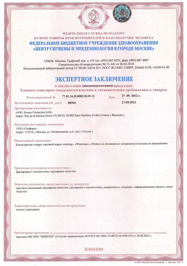 Сертификаты - Официальный дилер PARKER в Балашихах